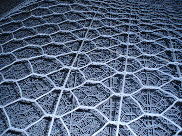 包塑的重型六角網(wǎng)是包塑絲編織的六角網(wǎng),用于制作石籠網(wǎng)網(wǎng)箱箱和直接固定在山坡以及邊溝防護(hù)水土流失、泥石流和山上石塊滾落。包塑重型六角網(wǎng)的原料鐵絲是涂敷了PVC塑料涂層的鐵絲,塑料涂層厚度大約在 1mm 左右。