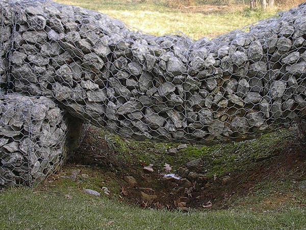 5.放置:綁好后,用機(jī)器小心將塞克格賓一個(gè)一個(gè)或兩個(gè)兩個(gè)的吊放到恰當(dāng)位置。為了保證質(zhì)量,石籠網(wǎng)縫邊、組裝時(shí)應(yīng)用粗的邊絲和綁絲。